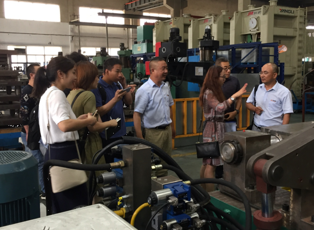 首先在營銷部銷售總監江總、采購部呂永剛部長及總裁辦趙錦翔主任等人的帶領下,國家知識產權局一行參觀了我司產品展示區及生產車間,觀看產品的生產工藝流程。重點觀看調研我司自主研發的內撐式滾圈機、鋼圈自動焊接裝置及鋼圈聯軸滾圈機的機械機構和生產過程。深入了解了我司的產品特點和生產工藝工序,提出了很多寶貴的意見和見解。